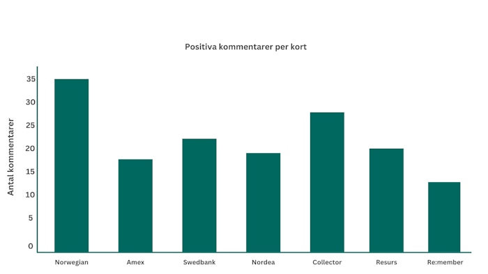 Norwegiankortet är även det kort som fått mest positiva kommentarer i undersökningen. Detta med 35 kommentarer medan Collector (Easyliving) kommer på en andraplats med 27 positiva kommentarer.